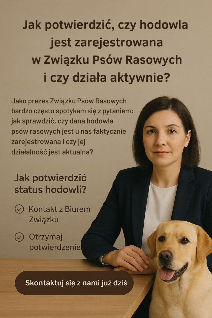 - Bezpośredni kontakt z biurem Związku – aby potwierdzić status hodowli, wystarczy wysłać do nas zapytanie